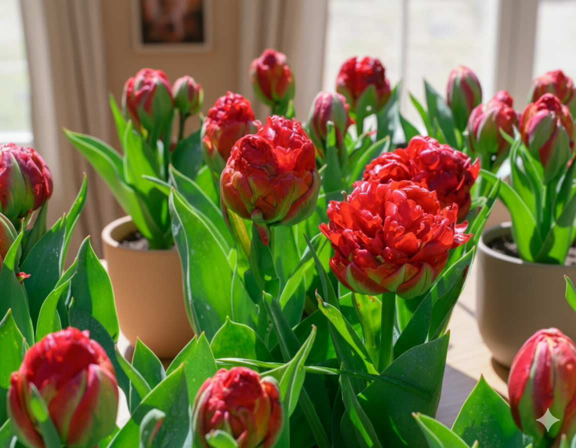 Додаткового зимового укриття кімнатні тюльпани не потребують — достатньо стабільної температури в приміщенні та легкого догляду.