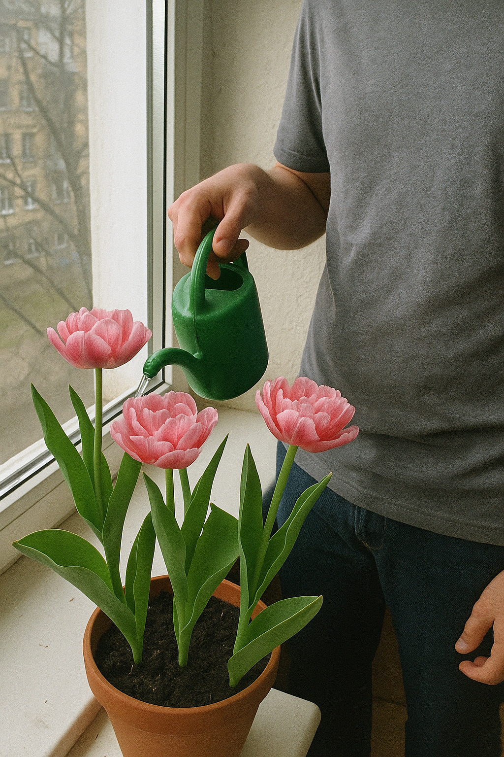 Садіть у горщик глибиною 15–25 см, дотримуйтесь відстані 3–5 см між цибулинами. Так тюльпани сформують міцні стебла та легко проростатимуть.